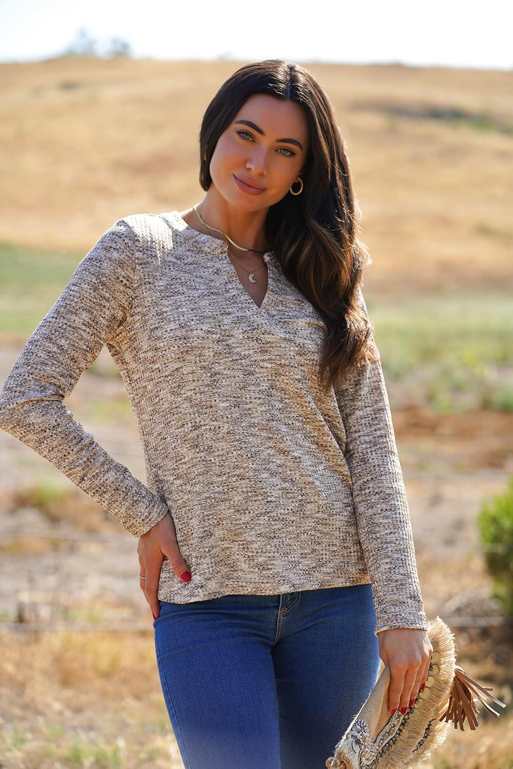 Dokotoo Womens Waffle Knit Tops V Neck Long Sleeve Shirts Dresy Casual Blouses Fall Outfits 2025