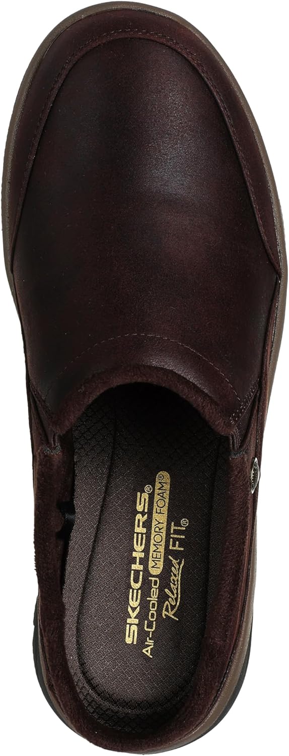 Make your style easy-to-wear with comfort in Skechers Relaxed Fit®: Easy Going-Latte 2. This water-resistant slip-on features a leather-textured fabric upper with faux-fur trim and a Skechers Air-Cooled Memory Foam® insole.