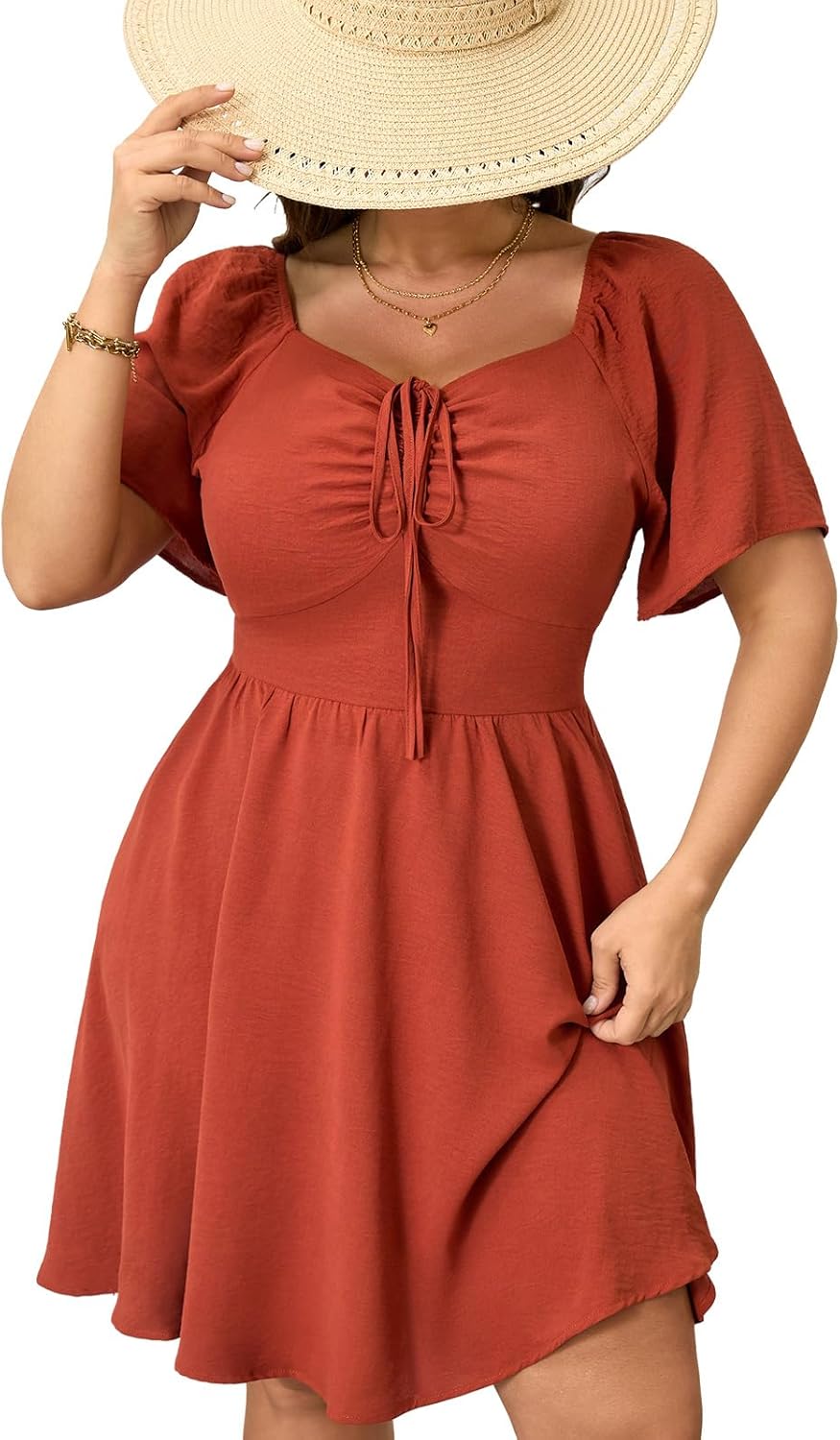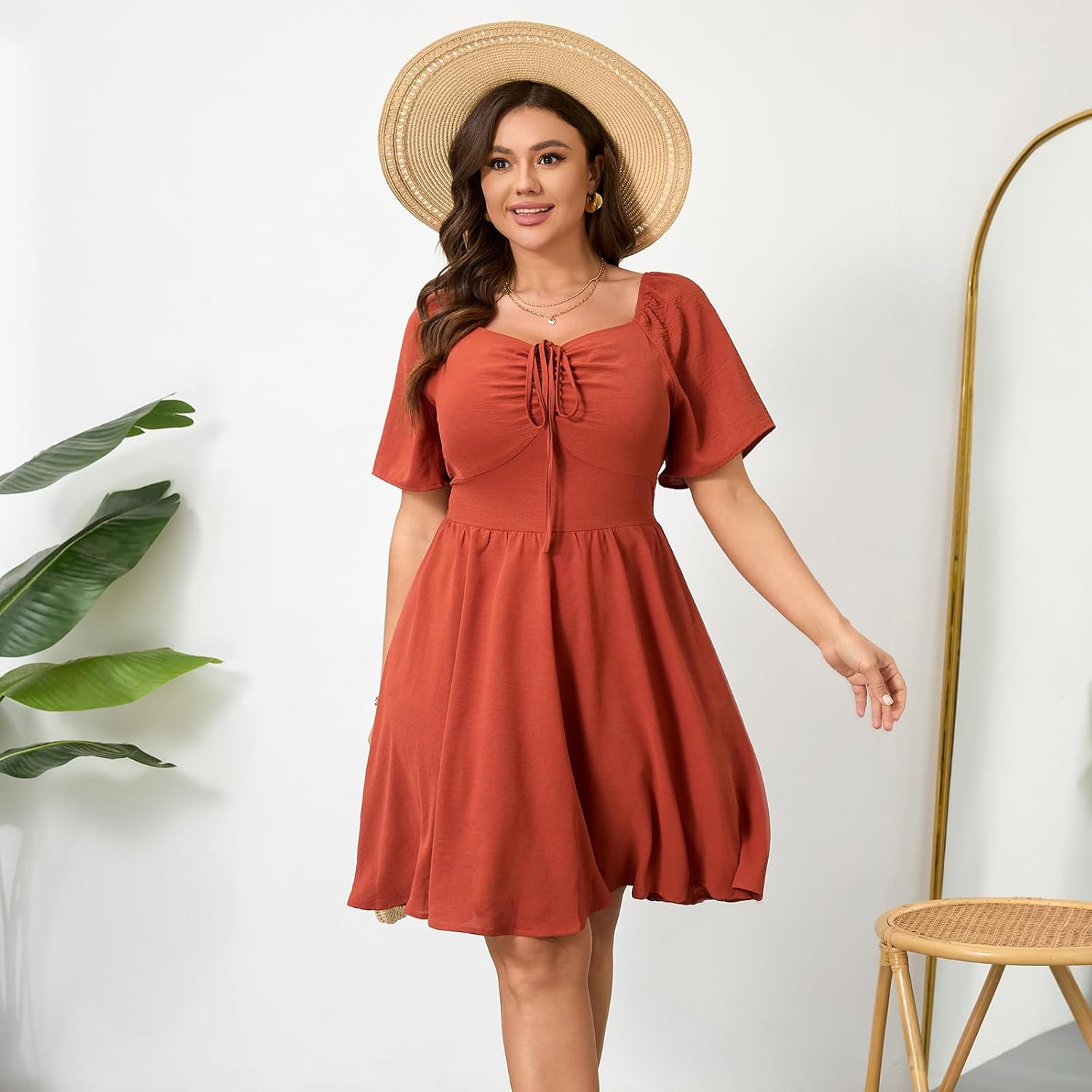Womens Summer Casual Dresses Drawstring Plus Size Mini Dress