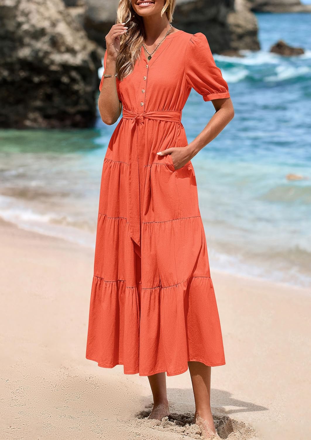 PRETTYGARDEN Boho Dresses for Women 2025 Casual Long Beach Vacation Dress