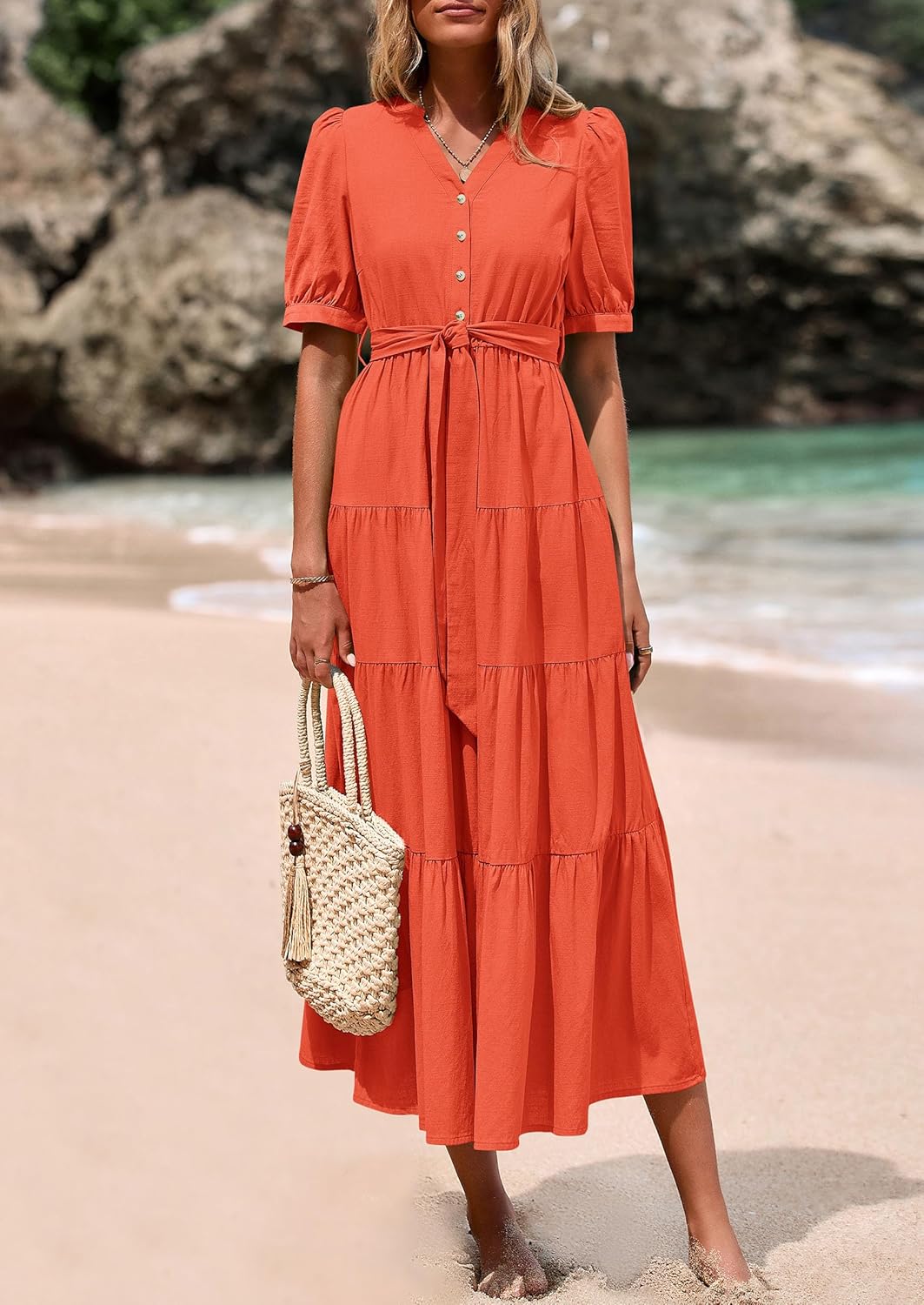 The video showcases the product in use.The video guides you through product setup.The video compares multiple products.The video shows the product being unpacked. Beach Vacation Dress Merchant Video