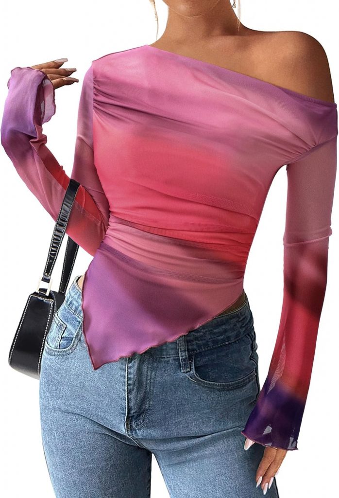 Product description PRETTYGARDEN Womens Fall Trendy Off Shoulder Tops 2025 Mesh Long Sleeve Shirts PRETTYGARDEN