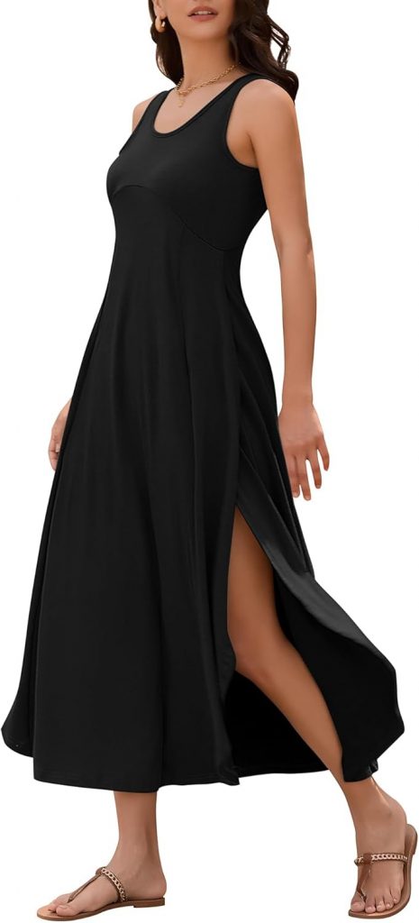 Product description oten Women’s Crew Neck Sleeveless Cutout Twist Front Bodycon Slit Midi Dress The
