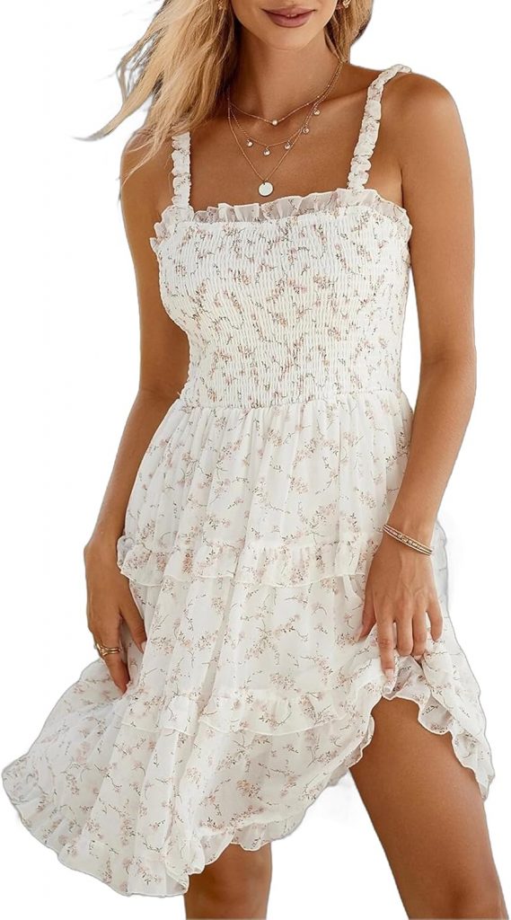 Product description Women’s 2025 Summer Floral Dress Square Neck Strapped Swing A Line Beach Dress
