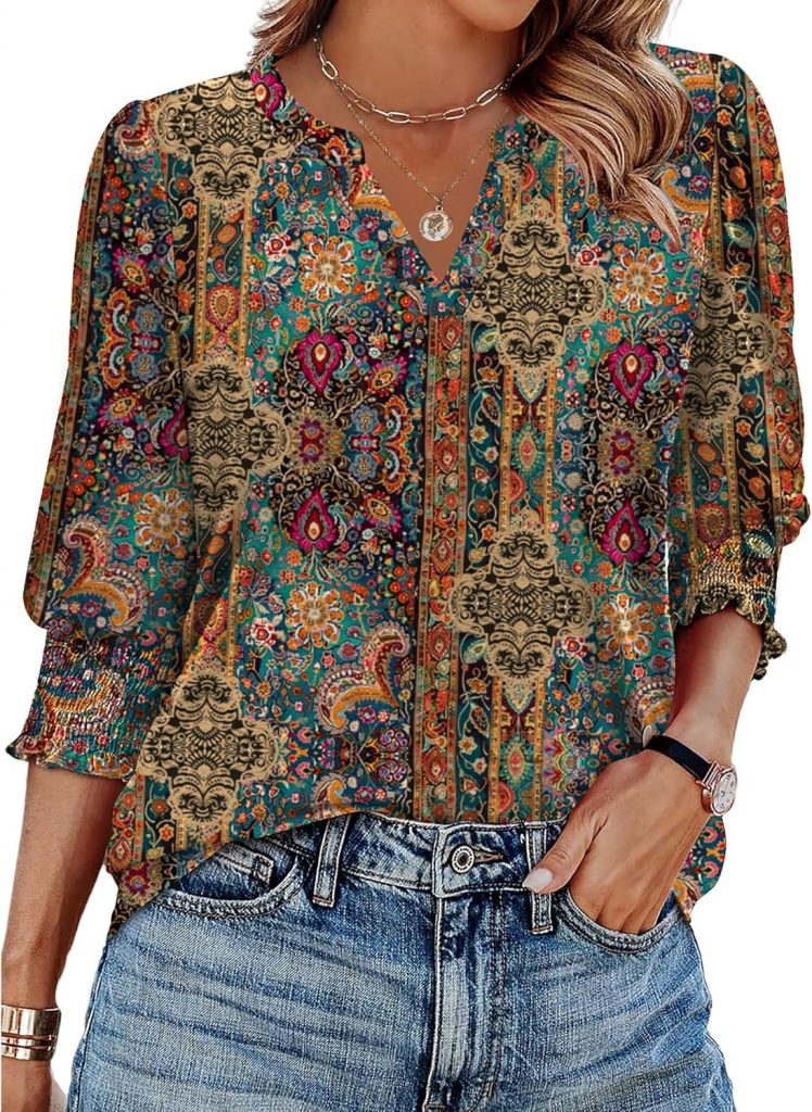 Product description Zeagoo 3/4 Length Sleeve Womens Tops V Neck Shirts 2025 Fall Classic Plaid