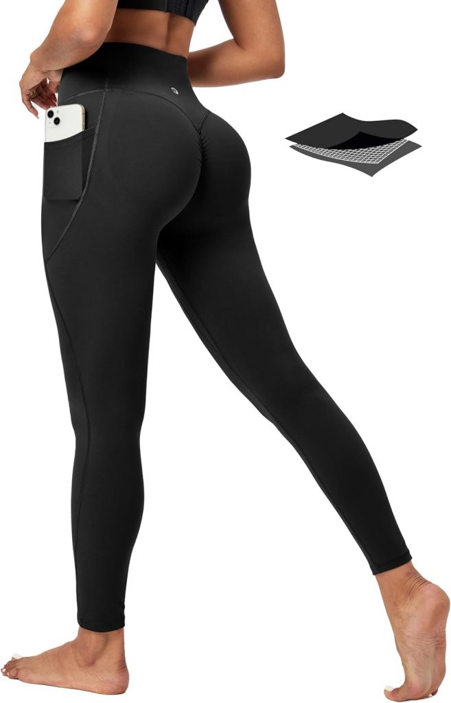 Scrunch Butt Lifting Leggings for Women Tummy Control No Front Seam Compression Workout Leggings with Pockets Yoga Pants