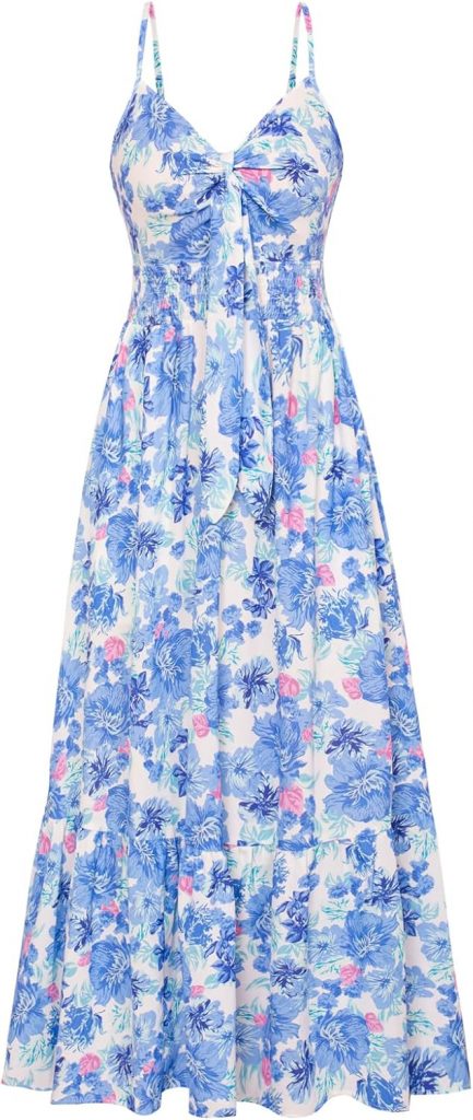 Product description Sun Dresses Women Summer Spaghetti Strap Smocked Long Flowy Dress with Pockets Flattering