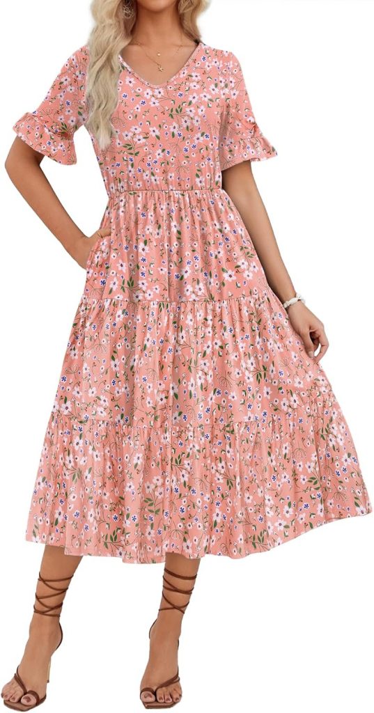 Product description Zeagoo Women Summer Dress with Pockets Floral Ruffle Sleeve Sundress Midi Casual Vacation
