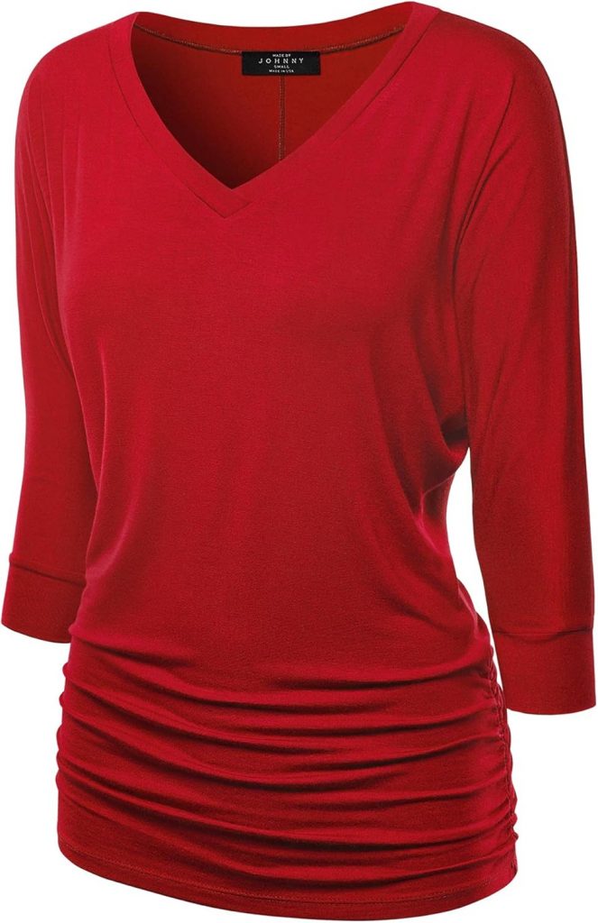 Introducing the Made By Johnny Women’s Boat Neck and V-Neck 3/4 Sleeve Draped Dolman Top