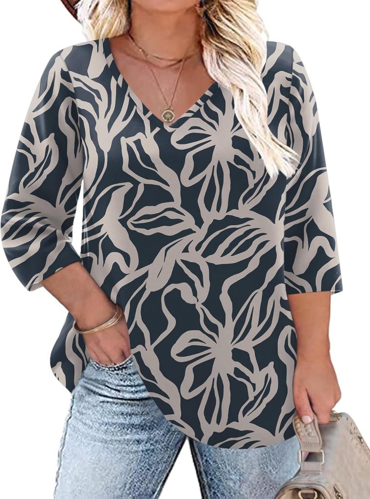 Product description Plus Size Tops for Women 3/4 Sleeve T Shirts V Neck Blouses Casual