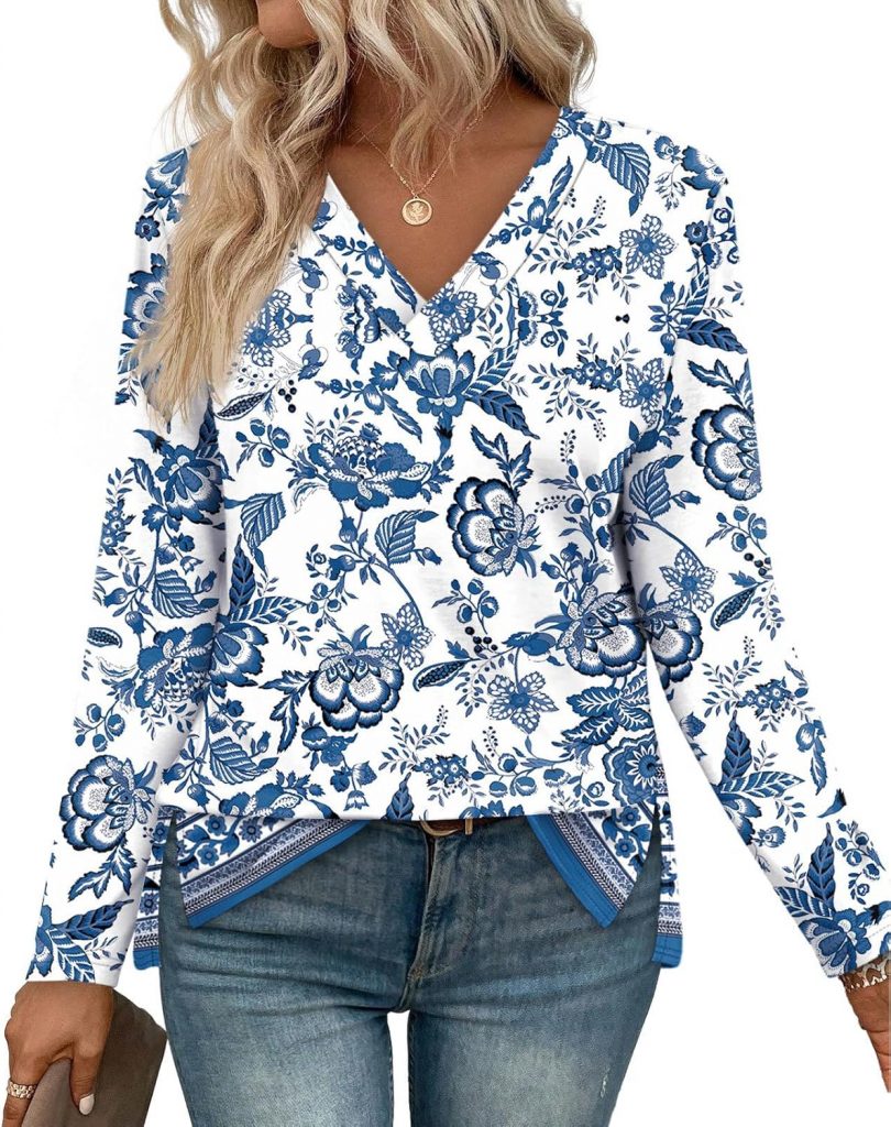 Product description Long Sleeve Tops for Women V Neck Blouses Loose Fit Shirts Boho Top