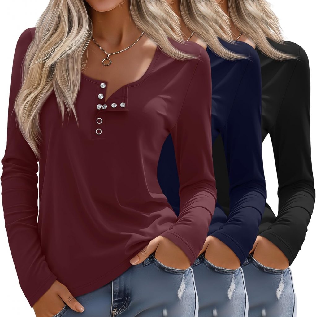 Features: The button-down front details allow our women’s long-sleeve henley tops to show off the