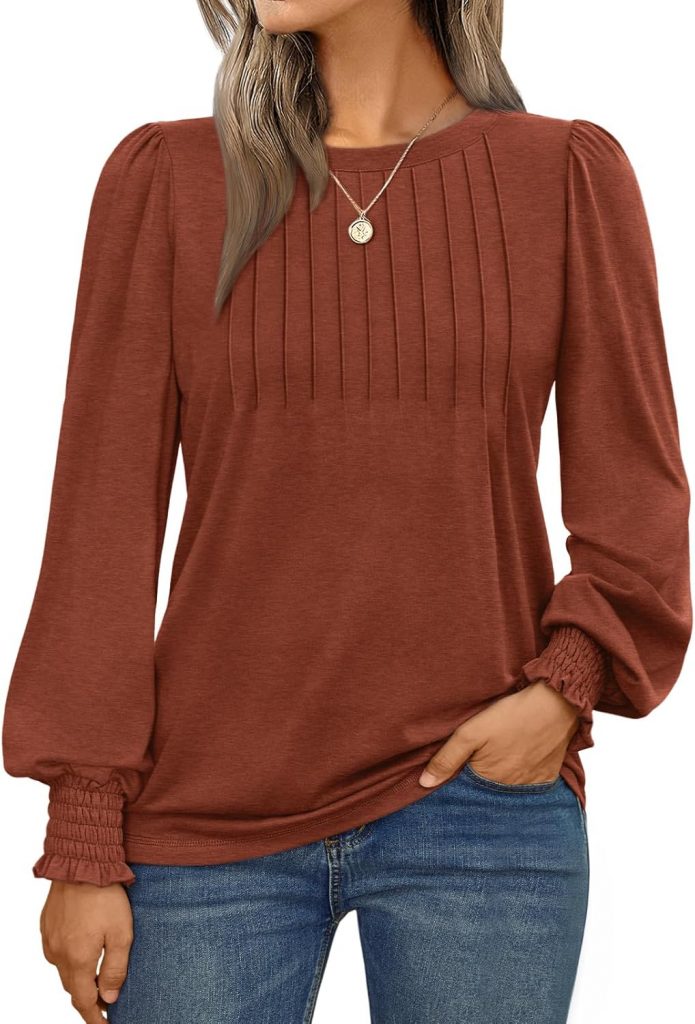 AUTOMET Long Sleeve Shirts Womens Pleated Business Casual Blouses with Smocked Cuffs