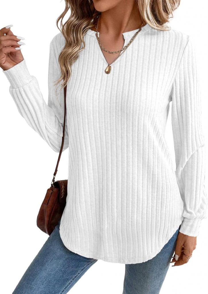 SHEWIN Womens Fall Fashion 2025 Casual Long Sleeve V Neck Tops Shirts Sweaters