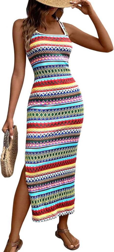 Product description PRETTYGARDEN Boho Dresses for Women Slim Tank Square Neck Split Maxi Dress The
