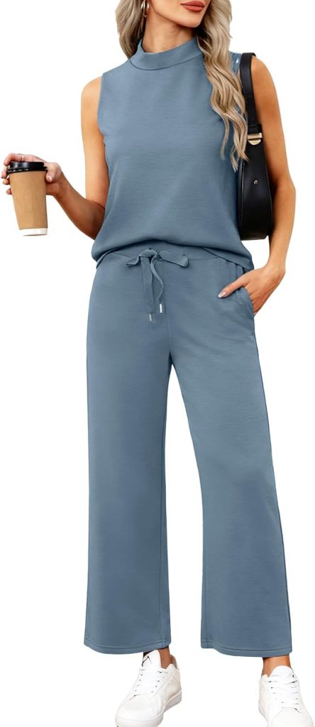 Casly Lamiit Women’s Summer 2 Piece Outfits Mock Neck Tank Top Cropped Wide Leg Pants Lounge Sets 2025 Fashion Tracksuit